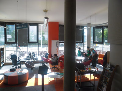 Свою главную задачу публичные библиотеки видят в том, чтобы сделать чтение удовольствием. Эта идея воплощается и в организации пространства библиотеки – нет строгих рядов столов и стульев, мягкие пуфики, можно использовать в качестве стола подоконник.