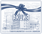 акция «Поздравь главную библиотеку Хакасии с юбилеем». Идея акции состояла в том, чтобы получить поздравительные открытки традиционным способом: а именно по почте, тем самым объединив всех, кто любит библиотеки независимо от места проживания. За два с лишним месяца было получено 37 поздравительных открыток, самыми оригинальными из которых оказались открытки, сделанные своими руками. Поздравления пришли из самых отдаленных уголков страны – из Югры Ханты-Мансийского автономного округа, Чувашской Республики, Пермского края, Курганской области и даже из Турции. Самыми преданными читателями главной библиотеки республики оказались жители небольшого хакасского села Июс, приславшие 18 поздравительных открыток.