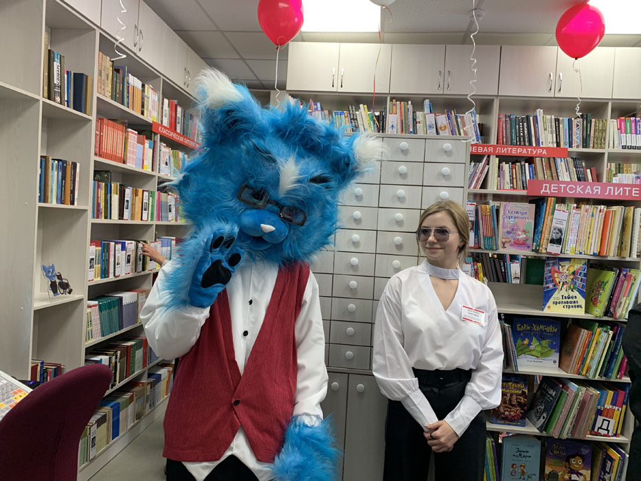 На стеллажах библиотеки с комфортом расположился и библиотечный талисман – сказочный хранитель Библиоша. Его прототипом стал знаменитый Кот учёный из поэзии Пушкина. В зависимости от окружающих его книг Библиоша превращается то в ученого, то в волшебника, то примеряет хакасский костюм. На открытии библиотеки Библиоша лично предстал перед гостями, поддерживая атмосферу праздника и фотографируясь со всеми желающими.