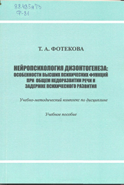 Фотекова Т. А. Нейропсихология дизонтогенеза: особенности высших психических функций при общем недоразвитии речи и задержке психического развития : учеб.-метод. комплекс по дисциплине : учеб. пособие для студентов, обучающихся по специальностям (030301) – «Психология», (050716) – «Специальная психология», (050715) – «Логопедия» / Т. А. Фотекова ; Федер. агентство по образованию, Хакас. гос. ун-т им. Н. Ф. Катанова. – Абакан : Изд-во Хакас. гос. ун-та, 2009. – 170 с. : ил., табл. ; 21 см. – Библиогр.: с. 151-168 (357 назв.). – 100 экз. – ISBN 978-57810-0618-2. – [11-43]