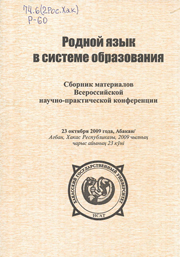 Родной язык в системе образования : сб. материалов Всерос. науч.-практ. конф., (Абакан, 23 окт. 2009 г.) / [отв. ред. Т. Г. Боргоякова]. – Абакан : Изд-во Хакас. гос. ун-та, 2009. – 259 с. : табл. ; 21 см. – Часть текста на хакас. яз. – Библиогр. в конце докл. – В надзаг.: Федер. агентство по образованию, Хакас. гос. ун-т им. Н. Ф. Катанова, Ин-т саяно-алт. тюркологии. – 200 экз. – ISBN 978-5-7810-0617-5. – [11-44]