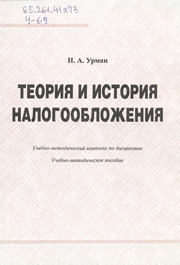 Урман Н. А. Теория и история налогообложения : учеб.-метод. комплекс по дисциплине : учеб.-метод. пособие / Н. А. Урман ; Федер. агентство по образованию, Хакас. гос. ун-т им. Н. Ф. Катанова. – Абакан : Изд-во Хакас. гос. ун-та, 2009. – 183 с. : табл. ; 21 см. – Библиогр.: с. 182-183. – 100 экз. – ISBN 978-5-7810-0616-8. – [11-51]