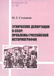 Степанов М. Г. Этнические депортации в СССР: проблемы российской историографии : [монография] / М. Г. Степанов ; Федер. агентство по образованию, Хакас. гос. ун-т им. Н. Ф. Катанова. – Абакан : Изд-во Хакас. гос. ун-та, 2010. – 113 ; 21 см. – Библиогр.: с. 95-112. – 100 экз. – ISBN 978-5-7810-0636-3. – [11-118]