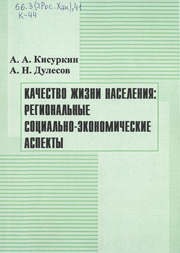 Кисуркин А. А. Качество жизни населения: региональные социально-экономические аспекты : [монография] / А. А. Кисуркин, А. Н. Дулесов ; Федер. агентство по образованию, Хакас. гос. ун-т им. Н. Ф. Катанова. – Абакан : Изд-во Хакас. гос. ун-та, 2010. – 214 с. : ил., табл. ; 21 см. – Библиогр.: с. 211-214 (93 назв.). – 100 экз. – ISBN 978-5-78100638-0. – [11-72]
