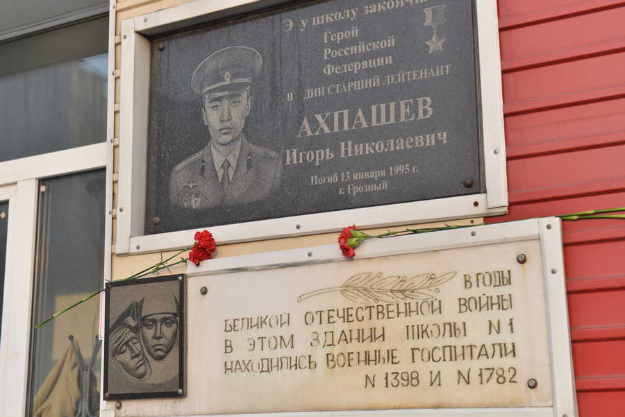 «В годы Великой Отечественной войны в этом здании школы № 1 находились военные госпитали № 1398 и № 1782».
