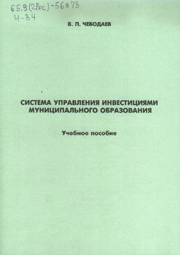 Чебодаев В. П. Система управления инвестициями муниципального образования : учеб. пособие / В. П. Чебодаев ; Федер. агентство по образованию, Хакас. гос. ун-т им. Н. Ф. Катанова. – Абакан : Изд-во Хакас. гос. ун-та, 2010. – 44 с. : ил., табл. ; 21 см. – Библиогр.: с. 43-44 (23 назв.). – 50 экз. – [12-114]
