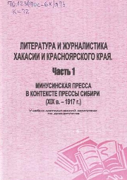 Артамонова, Н. Я. Культура и интеллигенция национальных районов Южной Сибири в XX веке : учеб.-метод. комплекс по дисциплине : метод. рек. / Н. Я. Артамонова ; М-во образования и науки Рос. Федерации, Федер. гос. бюджет. образоват. учреждение высш. проф. образования "Хакас. гос. ун-т им. Н. Ф. Катанова". – Абакан : Изд-во Хакас. гос. ун-та, 2013. – 98 с. ; 20 см. – Библиогр.: с. 96-98. – 100 экз. – ISBN 978-5-7810-1130-8. – [14-185]