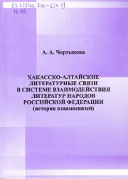 Чертыкова, А. А. Хакасско-алтайские литературные связи в системе взаимодействия литератур народов Российской Федерации : (история взаимосвязей) : [монография] / А. А. Чертыкова ; М-во образования и науки Российской Федерации, ГОУ ВПО "Хакас. гос. ун-т им. Н. Ф. Катанова". – Абакан : Изд-во Хакас. гос. ун-та, 2011. – 159 с. ; 21 см. – Библиогр.: с. 150-159 и в примеч. – 50 экз. – ISBN 978-5-7810-0724-0. – [13-453]