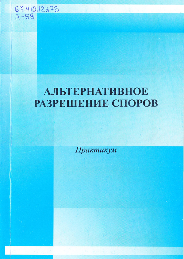 Альтернативное разрешение споров : учеб.-метод. комплекс по дисциплине : практикум / [сост. В. Н. Козлова]. – Абакан : Изд-во Хакас. гос. ун-та, 2014. – 115 с. : табл. ; 20 см. – В надзаг. данных: М-во образования и науки Рос. Федерации, Федер. гос. бюджет. образоват. учреждение высш. проф. образования "Хакас. гос. ун-т им. Н. Ф. Катанова". – Библиогр. в конце тем и в подстроч. примеч. – 50 экз. – ISBN 978-5-7810-1177-3. – [14-326]