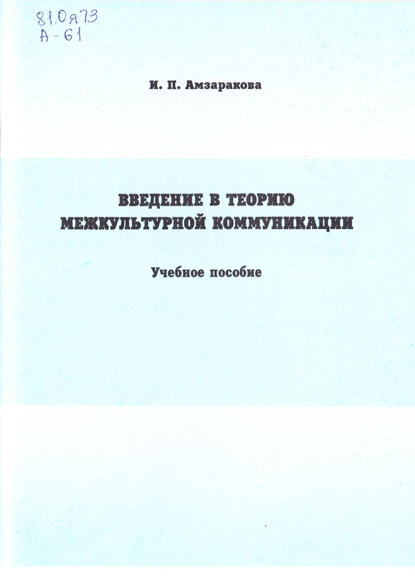 Амзаракова, И. П. Введение в теорию межкультурной коммуникации : учеб.-метод. комплекс по дисциплине : учеб. пособие / И. П. Амзаракова. – Абакан : Изд-во Хакас. гос. ун-та, 2014. – 83 с. : ил., табл. ; 20 см. – В надзаг. данных: М-во образования и науки Рос. Федерации, Федер. гос. бюджет. образоват. учреждение высш. проф. образования "Хакас. гос. ун-т им. Н. Ф. Катанова". – Библиогр.: с. 77-78 (43 назв.). – 50 экз. – ISBN 978-5-7810-1180-3. – [14-330]