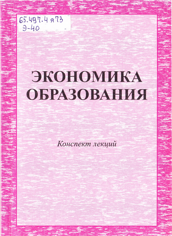 Экономика образования : учеб.-метод. комплекс по дисциплине : конспект лекций / [сост. А. Е. Тюдишев, Ю. А. Жвирблис]. – Абакан : Изд-во Хакас. гос. ун-та, 2014. – 90 с. : ил., табл. ; 20 см. – В надзаг. данных: М-во образования и науки Рос. Федерации, Федер. гос. бюджет. образоват. учреждение высш. проф. образования "Хакас. гос. ун-т им. Н. Ф. Катанова". – Библиогр.: с. 89-90 (25 назв.) и в подстроч. примеч. – 100 экз. – ISBN 978-5-7810-1175-9. – [14-325]