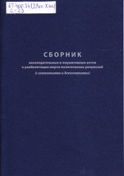 Сборник законодательных и нормативных актов о реабилитации жертв политических репрессий (с изменениями и дополнениями). – Абакан : [б. и.], 2010 (Тип. "Кооператив "Журналист"). – 62, [2] с. ; 21 см. – 300 экз. – [13-352]
